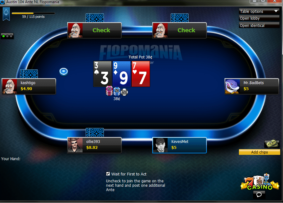 За столами Flopomania Вас ждет уникальный вид покера, в котором первые торги начинаются на флопе. Решая, сделать ли ставку, Вы уже будете знать три общей карты, что позволит принимать более выгодные решения с учетом вероятности улучшения руки.