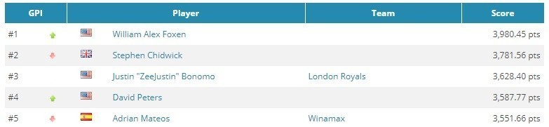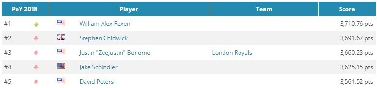 По последним подсчетам, американский профессионал Стивен Чидвик занимает второе место в рейтингах GPI и POY 2018, Джастин Бономо — третий в обоих.
