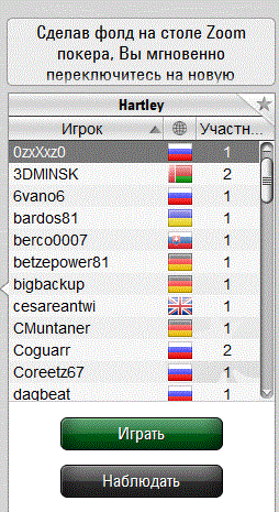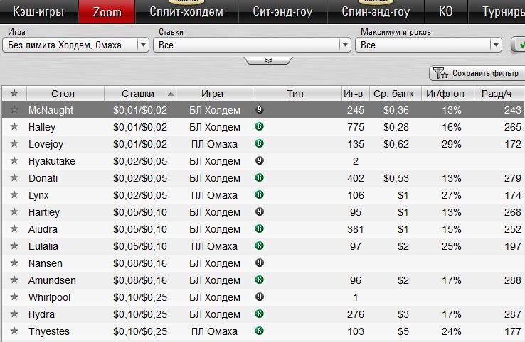 Быстрый покер доступен во всех покерных комнатах нашего топа. Однако в разных покер-румах он не только по-разному называется, но и отличается в плане настроек и некоторых игровых возможностей. Например, ПокерСтарс позволяет вести многостоловую игру даже за столами Zoom – один игрок может занимать места за несколькими столами в одном пуле, но при этом не будет встречаться сам с собой. В целом разница между возможностями небольшая, поэтому выбирайте ту комнату, которая покажется Вам наиболее привлекательной в плане бонусов и финансовых инструментов и наслаждайтесь игрой.