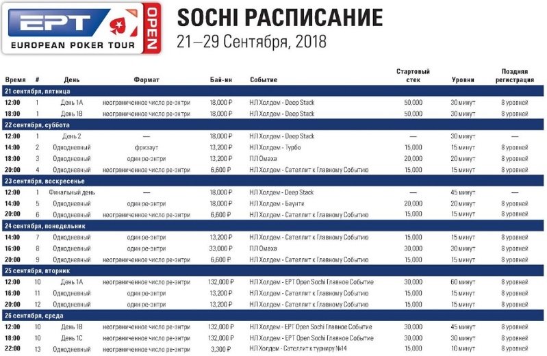 С 28 по 30 сентября на стадионе «Сочи Автодром» пройдет мероприятие, которое также может понравиться любителям покера и азарта — Formula Sochi. Сочинский EPT будет проводиться прямо перед началом популярнейшего соревнования в автоспорте. Сразу после окончания EPT игроки могут понаблюдать за гонками на стадионах Formula.