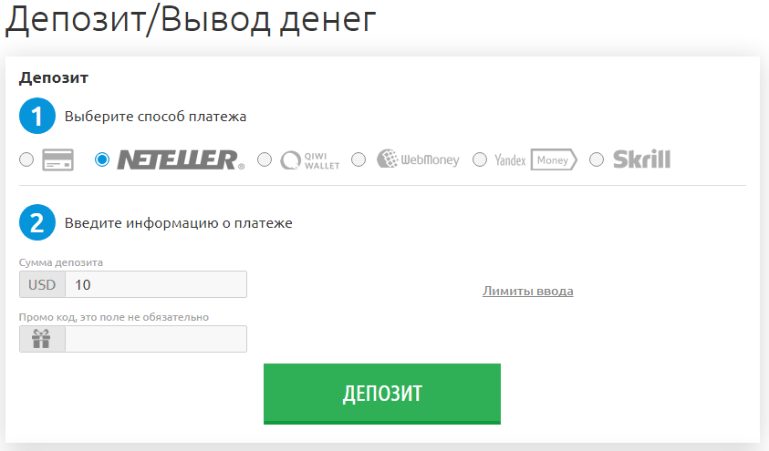 Выбор финансовых инструментов в покер-руме довольно ограничен, однако самые популярные платежные системы в нём представлены: