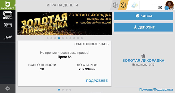 После регистрации пользователю становится доступен личный кабинет. В нем можно следить за анонсами акций, результатами лидербордов, количеством набранных очков по программе лояльности, просматривать историю раздач, доступные билеты для участия в МТТ.