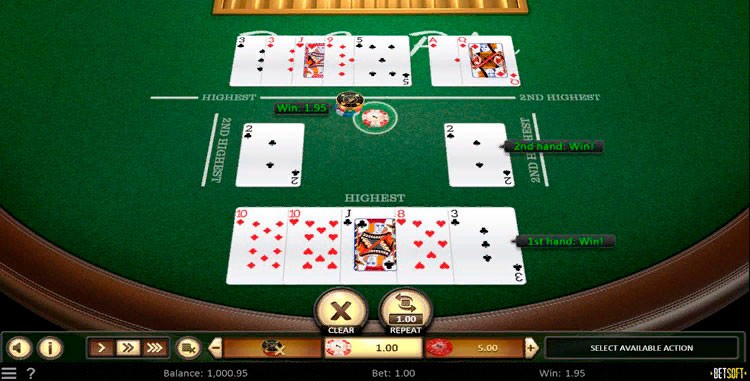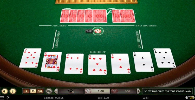 После раздачи вернуть ставку нельзя. Единственное доступное действие — разделить руку, кликнув по двум картам для малой комбинации. Они помещаются в поле 2nd Highest.