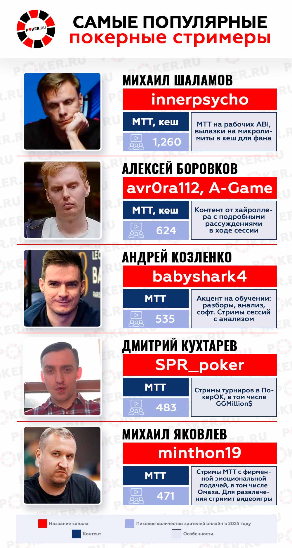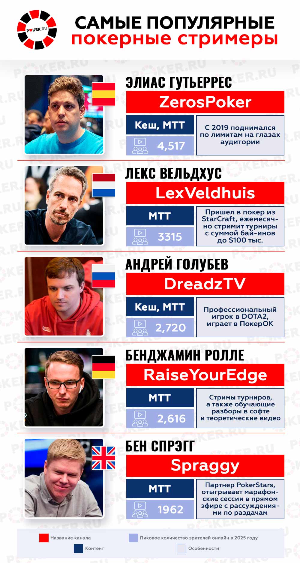 В русскоязычном сегменте также немало активных стримеров, однако самые высокие места в рейтинге занимают не профессиональные игроки, а любители. Они успешно совмещают увлечение покер с другими развлечениями, чем и привлекают аудиторию. Но в рейтинг все же внесены только профи.