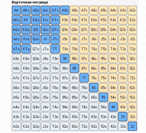 - 16-25% — несмотря на тщательный выбор стартеров для входа в торги на префлопе, покерист, скорее всего, является опытным игроком или новичком, знающим стратегию и позиционную игру. Он использует самые лучшие стартеры в ранних и средних позициях, но способен расширить спектр рук на Баттоне и Кат-оффе.