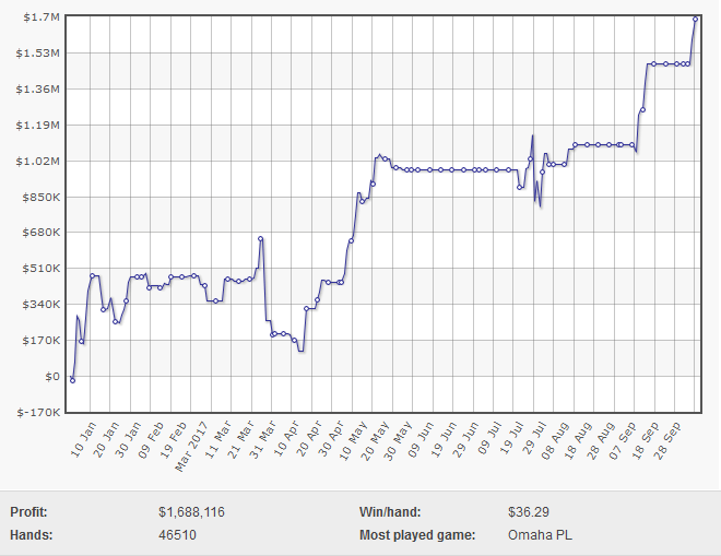 Тимофей «Trueteller» Кузнецов — один из лучших онлайн-игроков в покер из России показывает отличные результаты этой осенью. За 23 сессии и 3242 руки он выиграл $378,797. Менее чем за десять дней октября он уже выиграл более двухсот тысяч долларов.