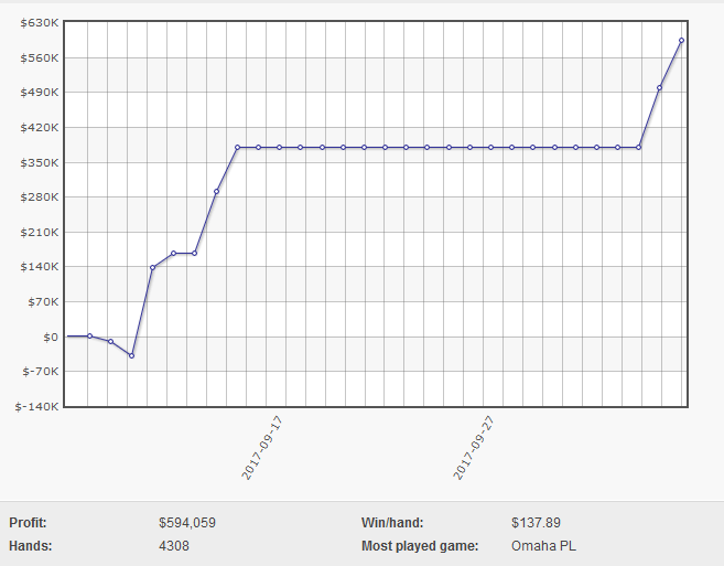 Его график результатов игры на высоких кеш лимитах за последние 30 дней выглядит так: