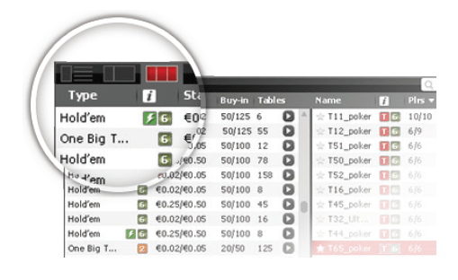 Удобная сортировка столов — пользователь может сортировать списки игр по разным параметрам с помощью колонок и быстрых кнопок, а также менять отображение перечня столов.
