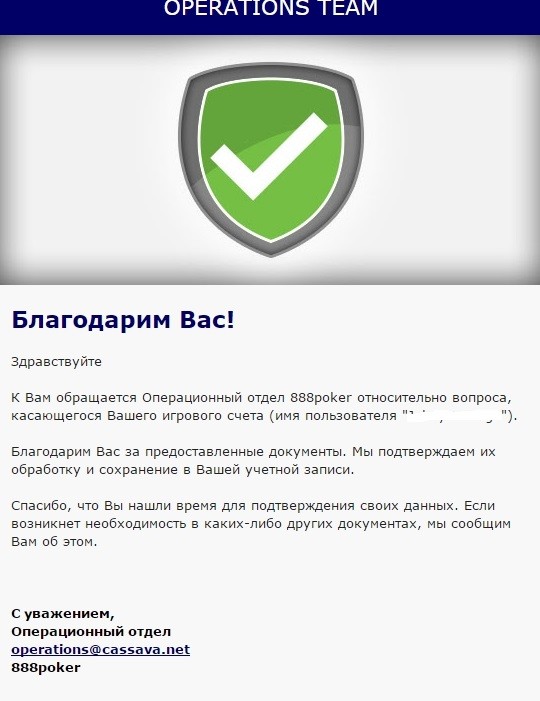 Адрес электронной почты является основным источником сведений об игроке, который только что создал новый аккаунт. Поэтому его проверка производится сразу после создания профиля. Пока покерист не зайдет на свою электронную почту и не пройдет по ссылке, присланной в приветственном сообщении, он не может авторизоваться в своем аккаунте. Верификация на 888Poker электронной почты позволяет получить бонус без депозита до 88$.