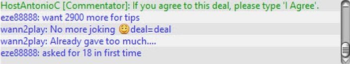 Финалисты «wann2play» и «eze88888» заключили сделку, оставшись в хедз-апе. По итогам сделки «eze88888» получил $1,257,203.66, а «wann2play» — $1,152,967.97. Однако Вэйджелу «eze88888» заключенная сделка не понравилась — когда игроки договорились, он решил, что хочет еще больше в качестве чаевых!